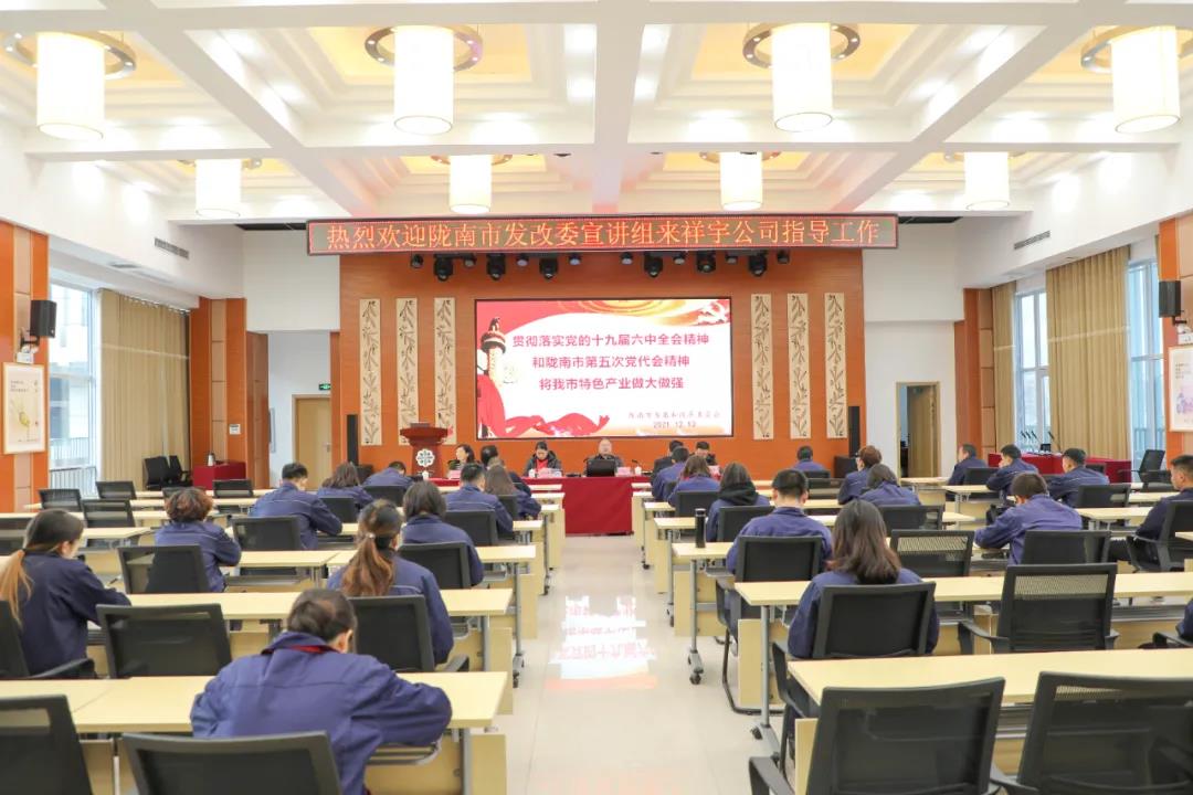 市發(fā)改委宣講團走進祥宇生態(tài)產(chǎn)業(yè)園宣講黨的十九屆六中全會及隴南市第五次黨代會精神。