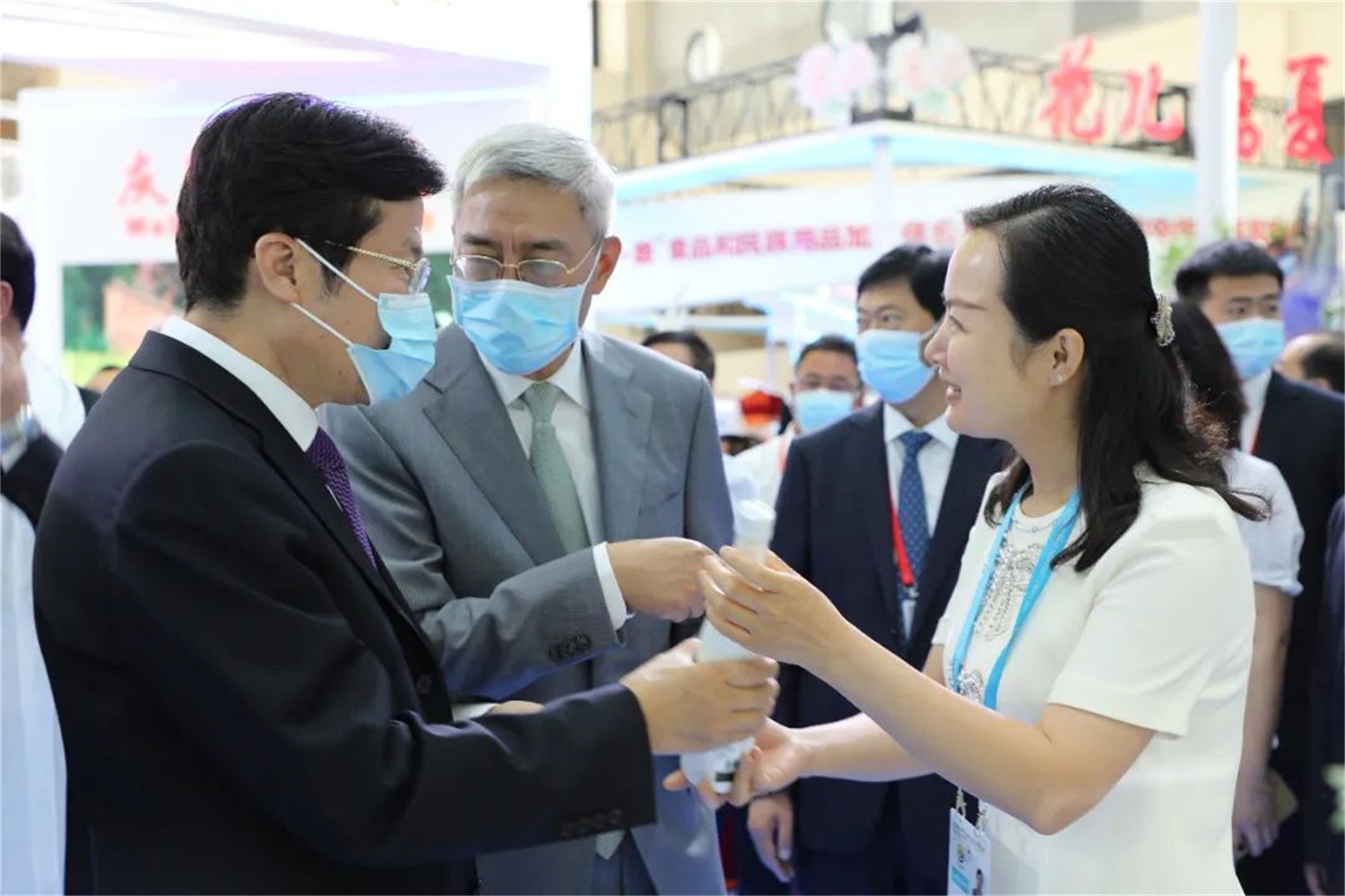 省市領(lǐng)導(dǎo)走進(jìn)隴南館,祥宇公司董事長(zhǎng)劉玉紅邀請(qǐng)各位領(lǐng)導(dǎo)品鑒了祥宇系列產(chǎn)品,