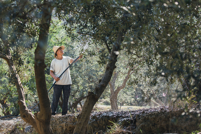 在炎熱干燥的季節(jié),農(nóng)戶會及時為油橄欖樹送來生命的甘泉。